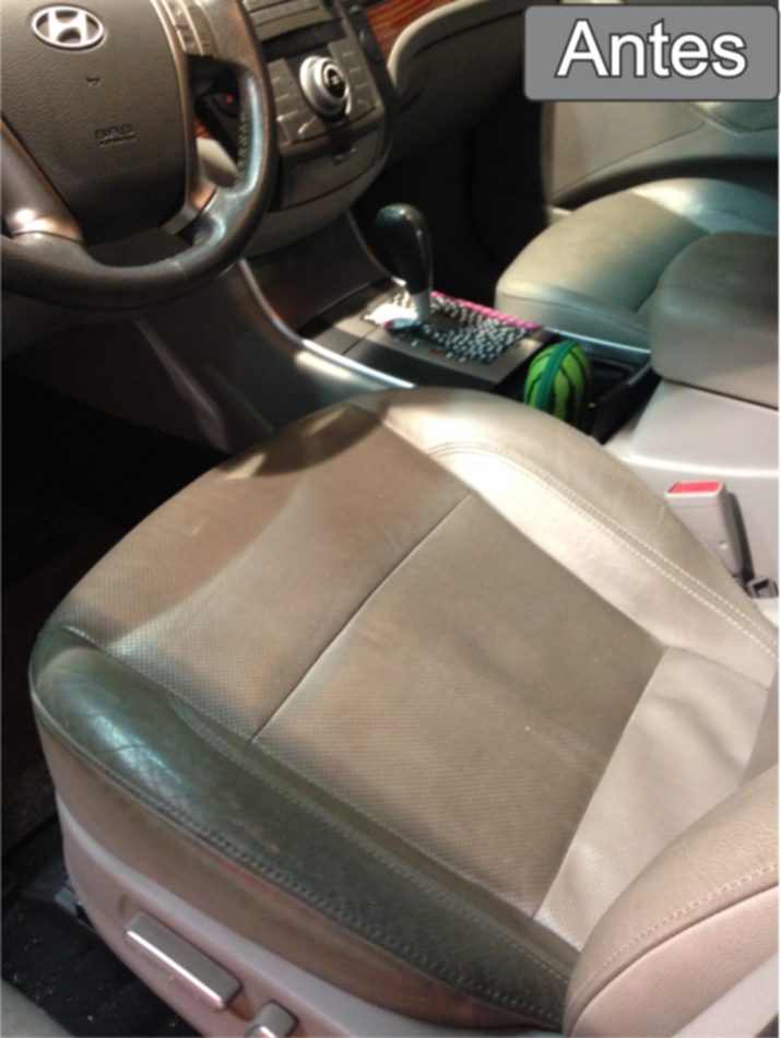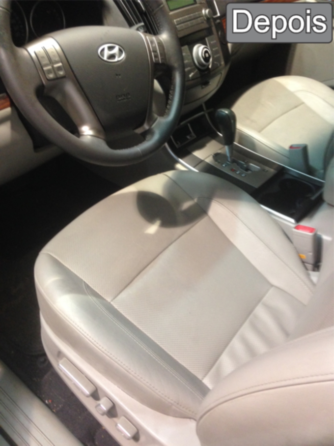 Aquelas manchas de quando comemos alguma coisa dentro do carro, aqueles farelos de biscoitos, aquelas marcas que pareciam não sair, veja a diferença na imagem.