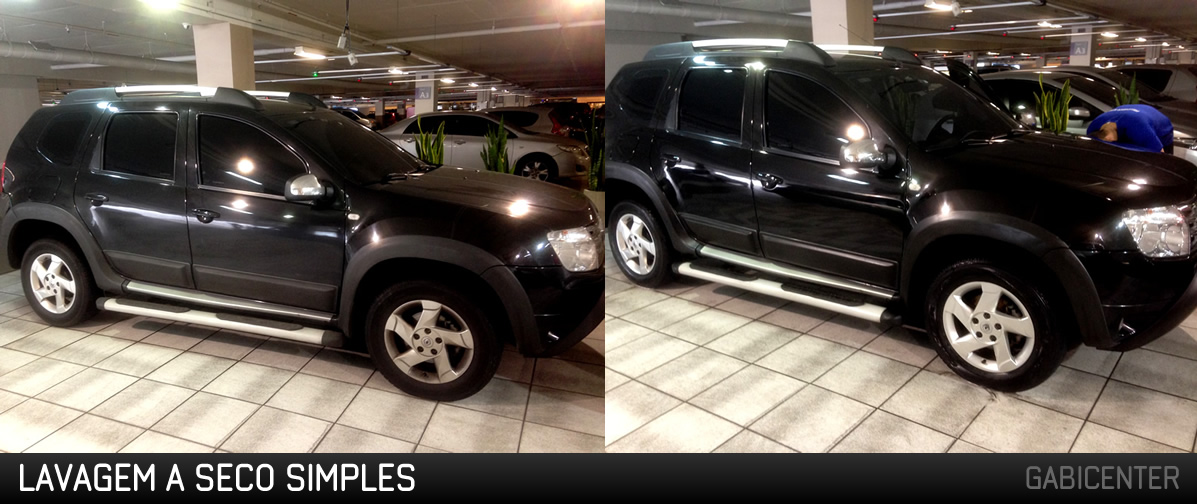 A lavagem à seco é mais detalhada. Utiliza-se shampoo automotivo específico para limpar e proteger a pintura. É uma lavagem que economiza de uma maneira considerável da tradicional de 500L para apenas 250ml de água.